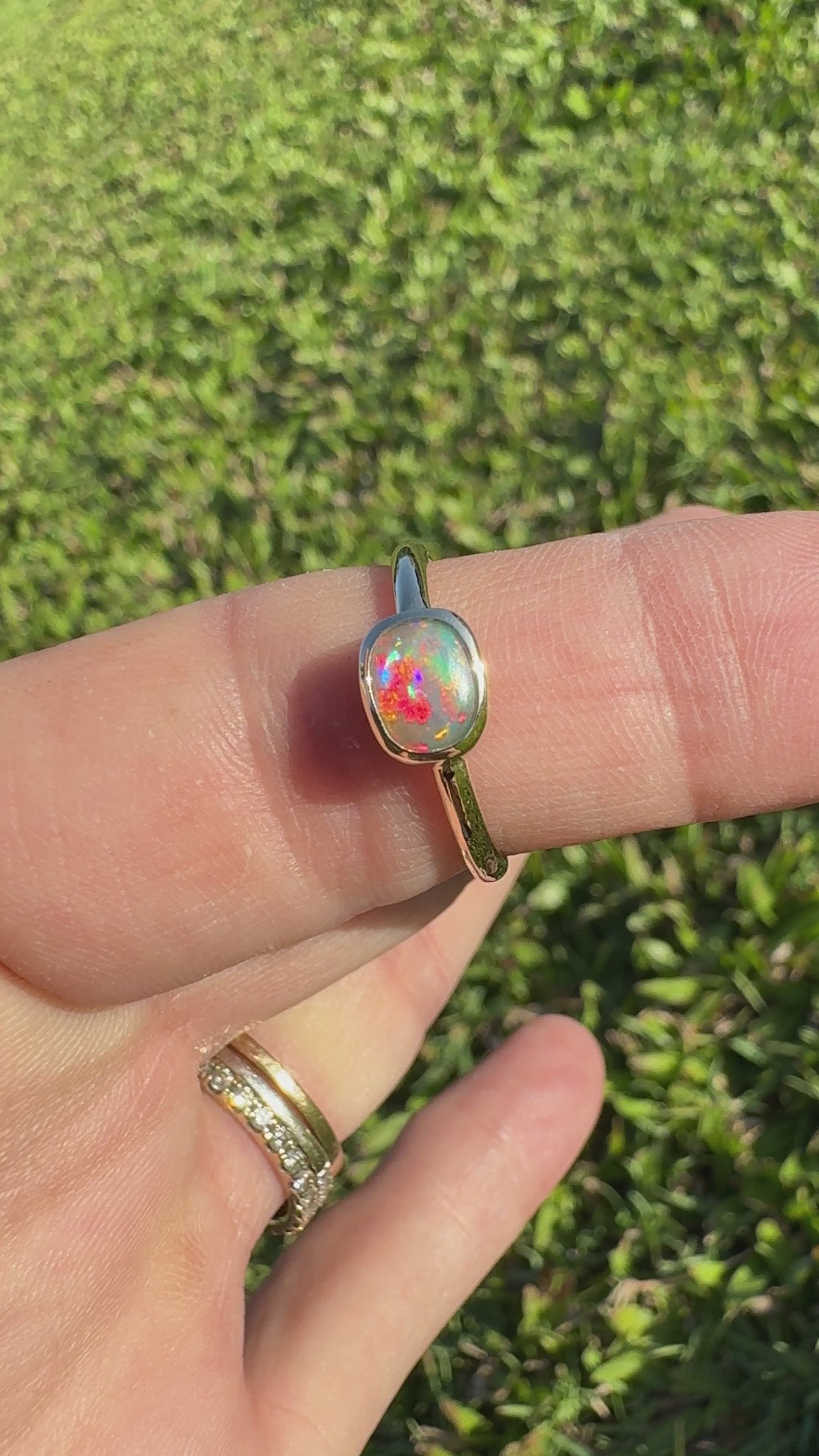 Uluru Flame ~ 0.8ct Solid Coober Pedy Crystal Opal 9ct Yellow Gold Ring