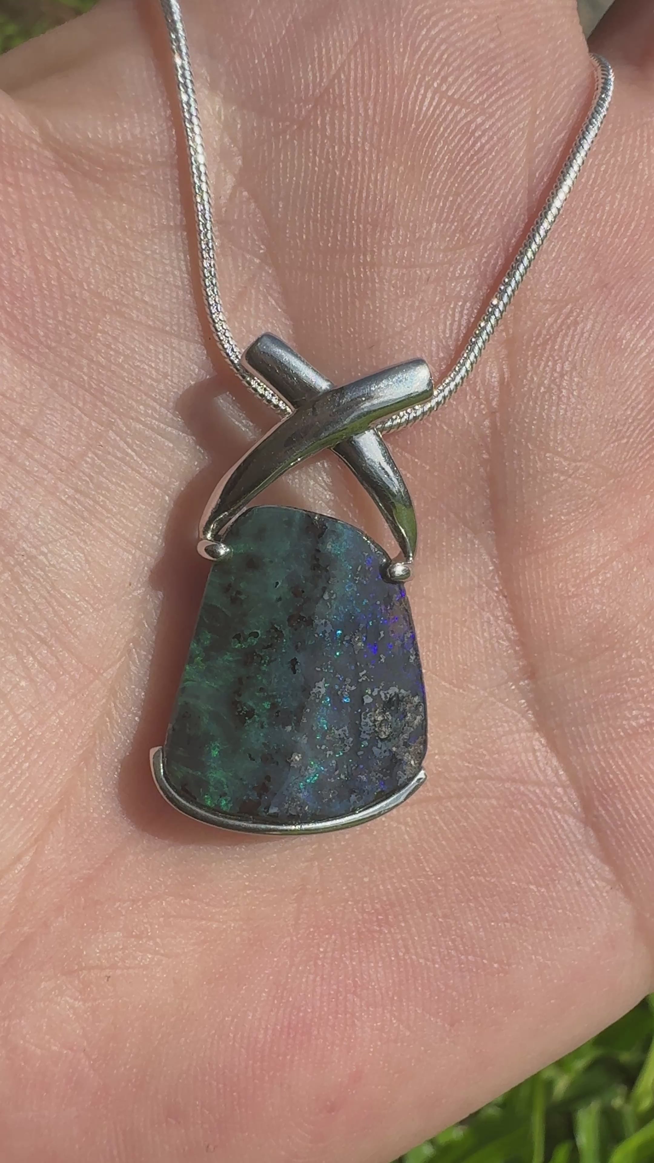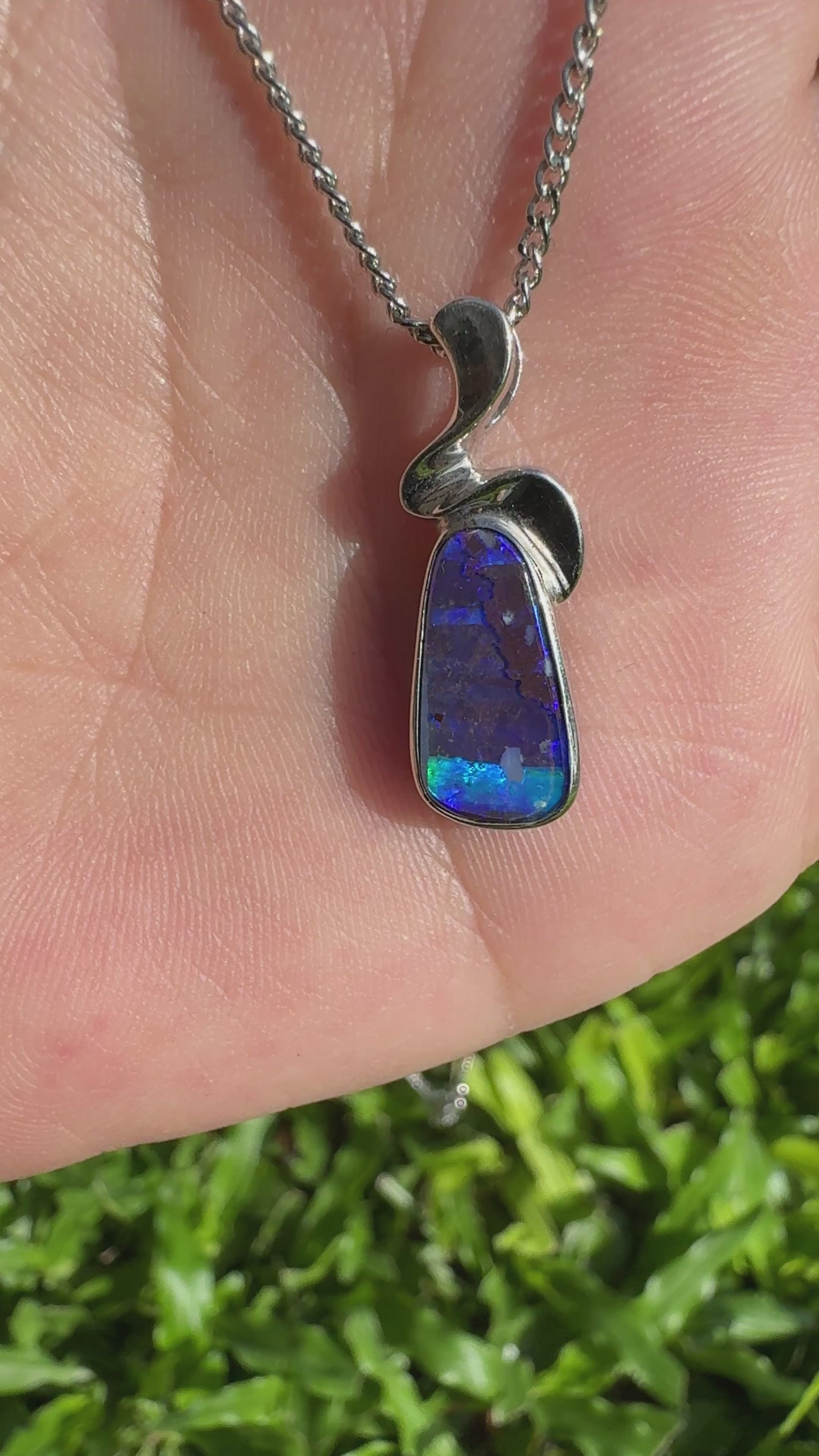 Isa Range Skyline ~ Queensland Boulder Opal 925 Sterling Silver Pendant Necklace