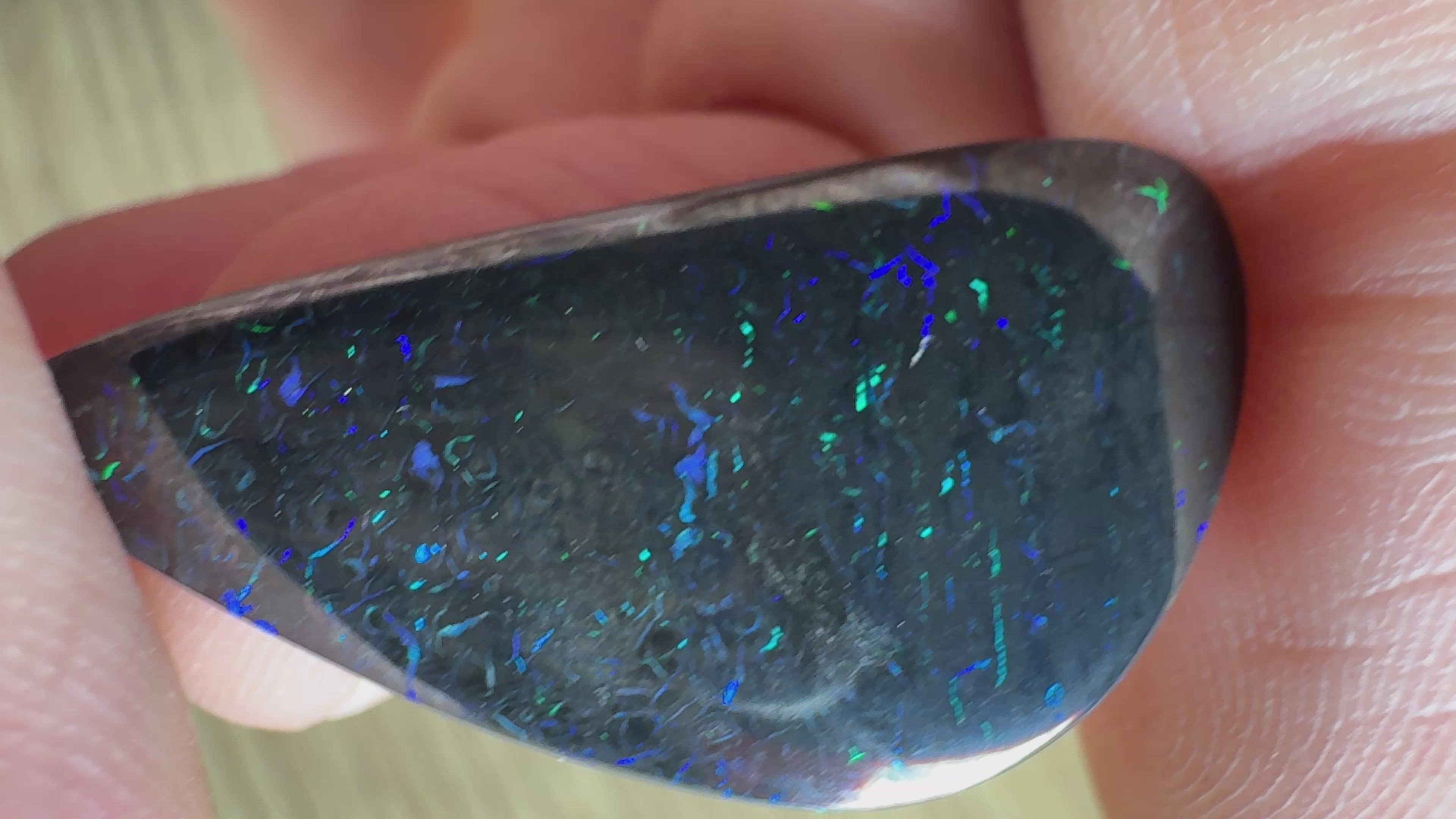 Matrix opal, like this piece, features opal interspersed within its host rock. To bring out its captivating colours, the opal undergoes a sugar treatment—a process where the stone is soaked in a sugar solution, then heated in acid to darken the matrix. This enhances the opal's natural brilliance, creating a stunning contrast that showcases its radiant hues. The result is a breathtaking gem that’s as unique as the landscape it hails from. Sugar treating is only done on Matrix opal.