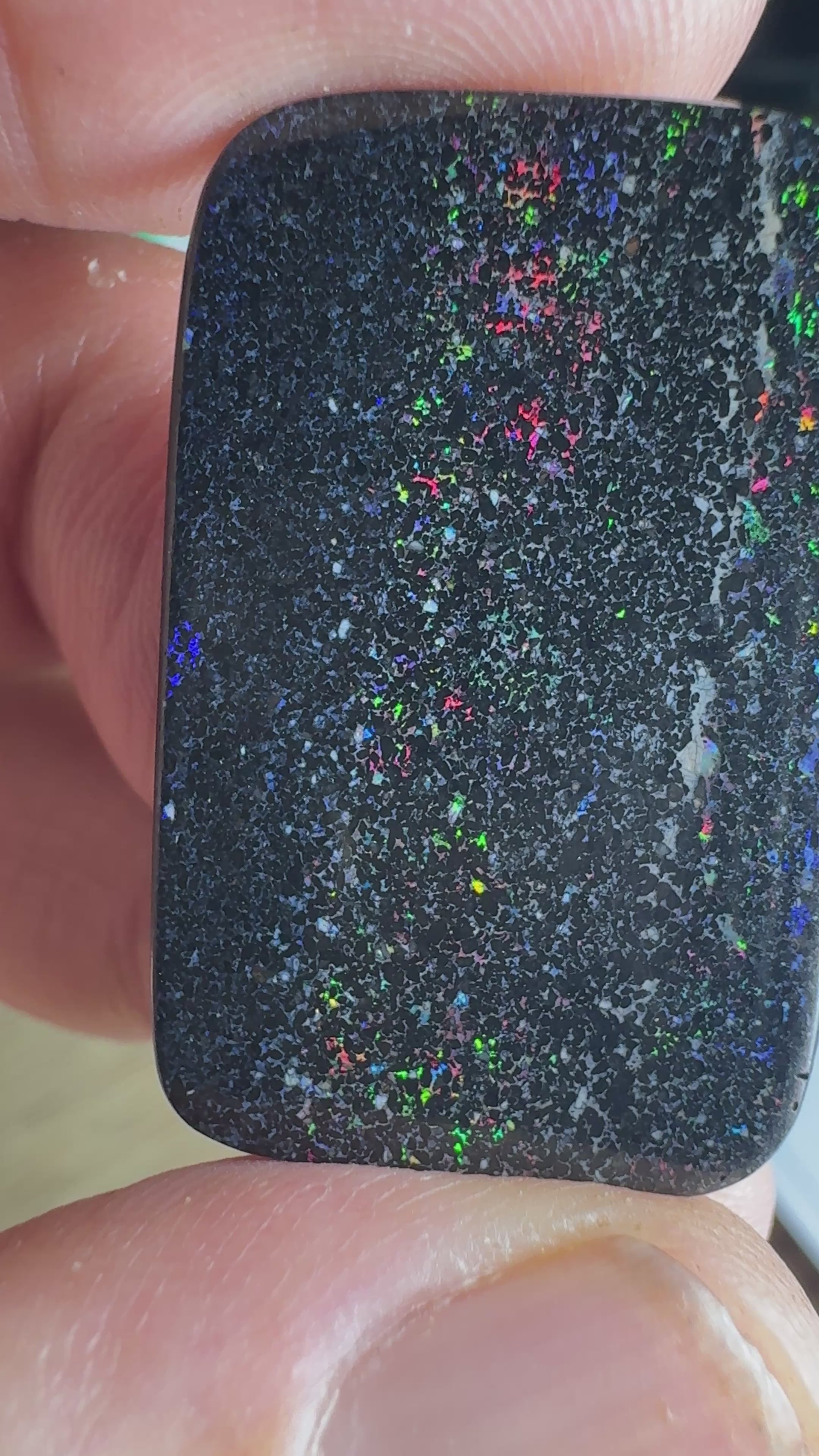 Matrix opal, like this piece, features opal interspersed within its host rock. To bring out its captivating colours, the opal undergoes a sugar treatment—a process where the stone is soaked in a sugar solution, then heated in acid to darken the matrix. This enhances the opal's natural brilliance, creating a stunning contrast that showcases its radiant hues. The result is a breathtaking gem that’s as unique as the landscape it hails from. Sugar treating is only done on Matrix opal.