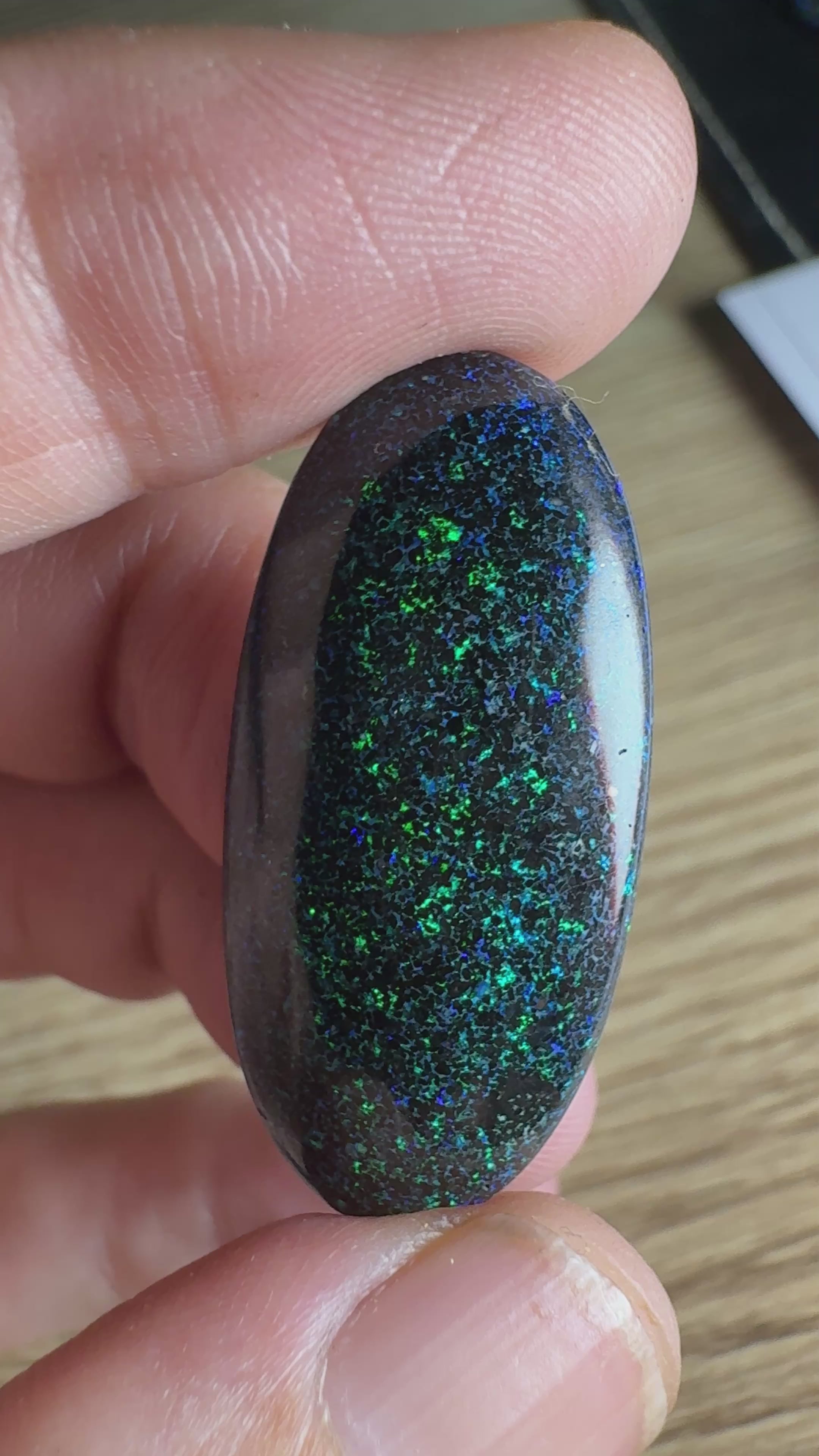 Matrix opal, like this piece, features opal interspersed within its host rock. To bring out its captivating colours, the opal undergoes a sugar treatment—a process where the stone is soaked in a sugar solution, then heated in acid to darken the matrix. This enhances the opal's natural brilliance, creating a stunning contrast that showcases its radiant hues. The result is a breathtaking gem that’s as unique as the landscape it hails from. Sugar treating is only done on Matrix opal.