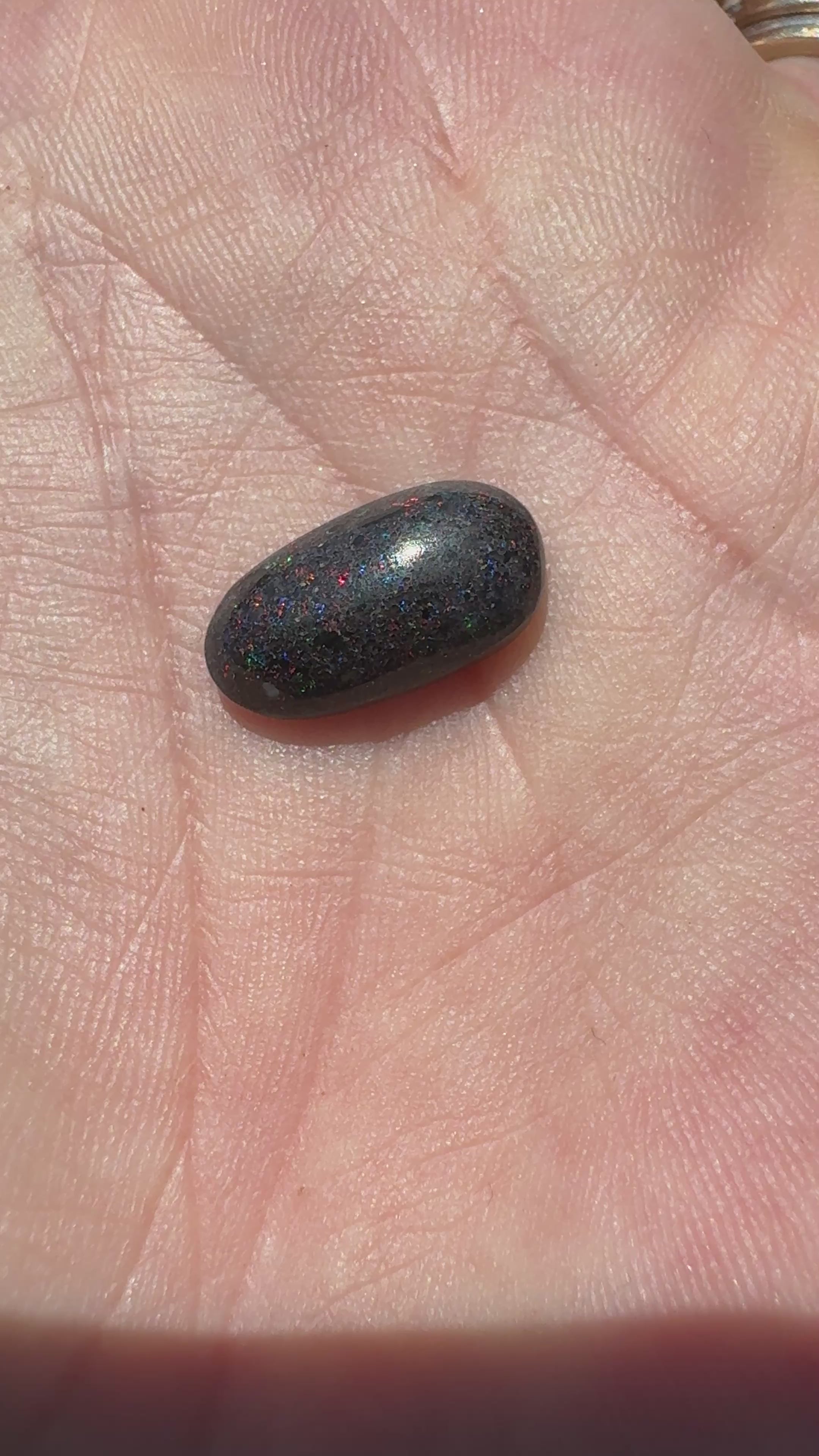 This opal showcases a nice display of colours. Hand-cut with precision, it embodies the natural beauty and diversity of Australia’s landscapes. Photos have been taken when the stone is wet and when it is dry.
