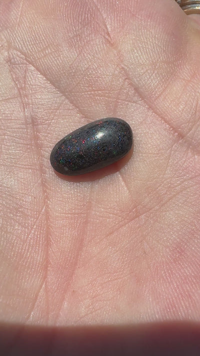 Matrix opal, like this piece, features opal interspersed within its host rock. To bring out its captivating colours, the opal undergoes a sugar treatment—a process where the stone is soaked in a sugar solution, then heated in acid to darken the matrix. This enhances the opal's natural brilliance, creating a stunning contrast that showcases its radiant hues. The result is a breathtaking gem that’s as unique as the landscape it hails from. Sugar treating is only done on Matrix opal.