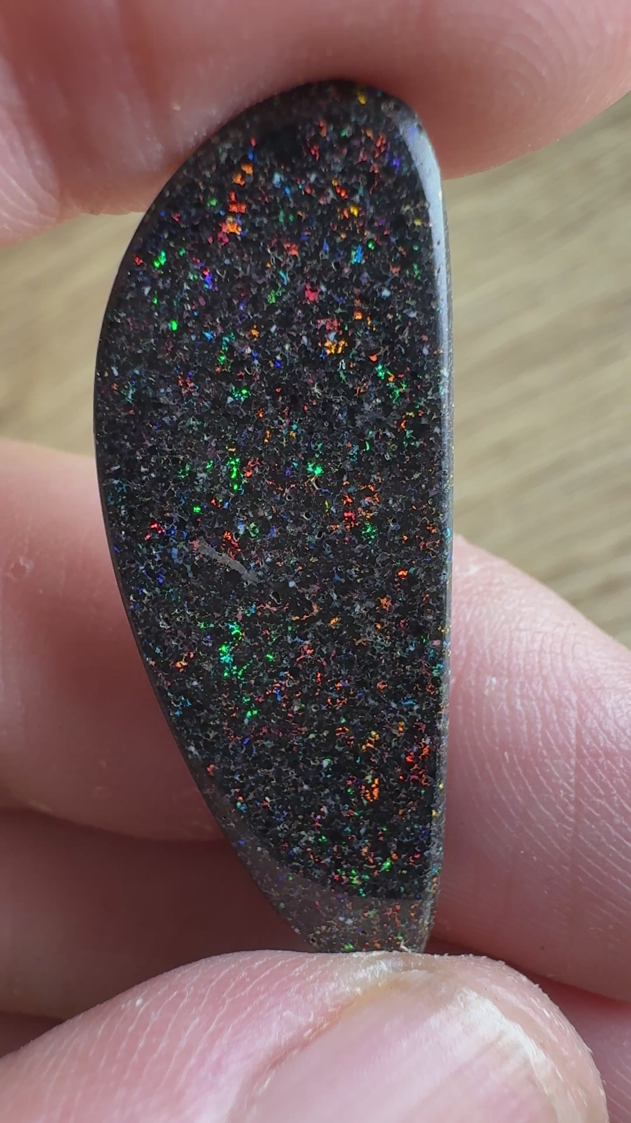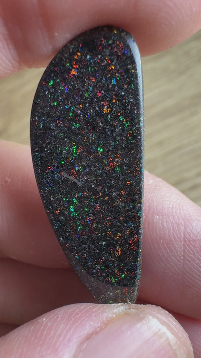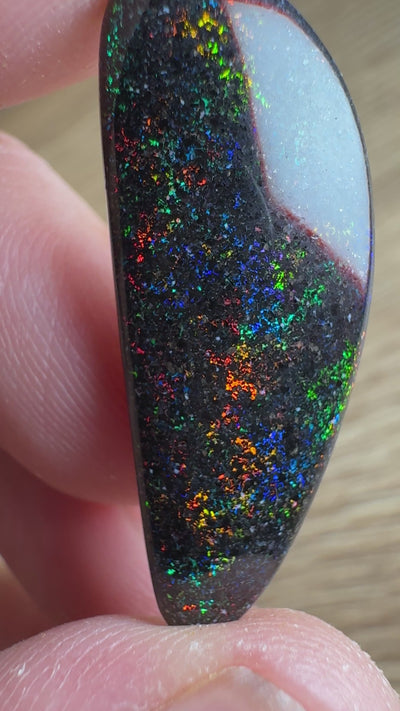 Matrix opal, like this piece, features opal interspersed within its host rock. To bring out its captivating colours, the opal undergoes a sugar treatment—a process where the stone is soaked in a sugar solution, then heated in acid to darken the matrix. This enhances the opal's natural brilliance, creating a stunning contrast that showcases its radiant hues. The result is a breathtaking gem that’s as unique as the landscape it hails from. Sugar treating is only done on Matrix opal.