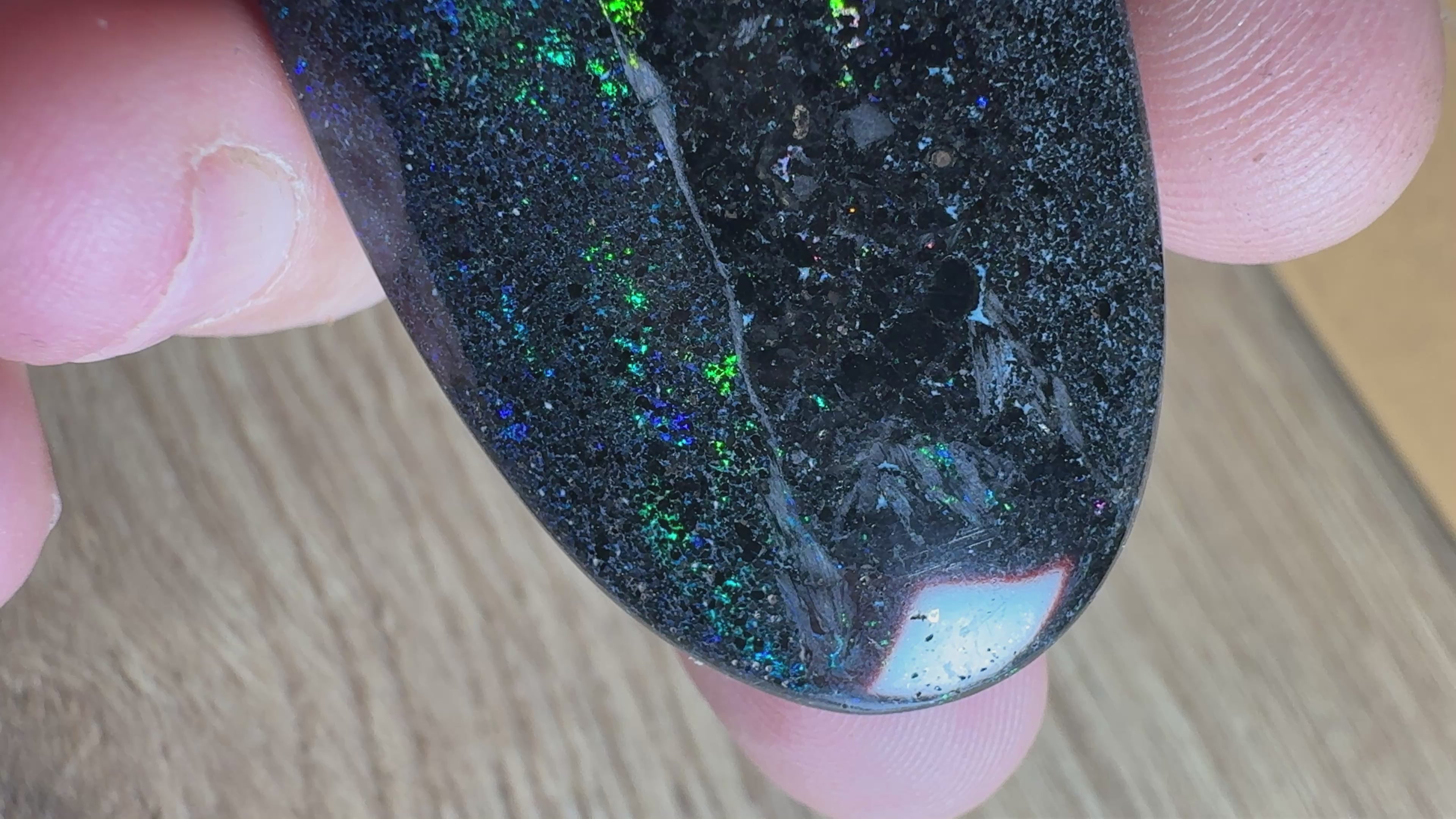 Matrix opal, like this piece, features opal interspersed within its host rock. To bring out its captivating colours, the opal undergoes a sugar treatment—a process where the stone is soaked in a sugar solution, then heated in acid to darken the matrix. This enhances the opal's natural brilliance, creating a stunning contrast that showcases its radiant hues. The result is a breathtaking gem that’s as unique as the landscape it hails from. Sugar treating is only done on Matrix opal.