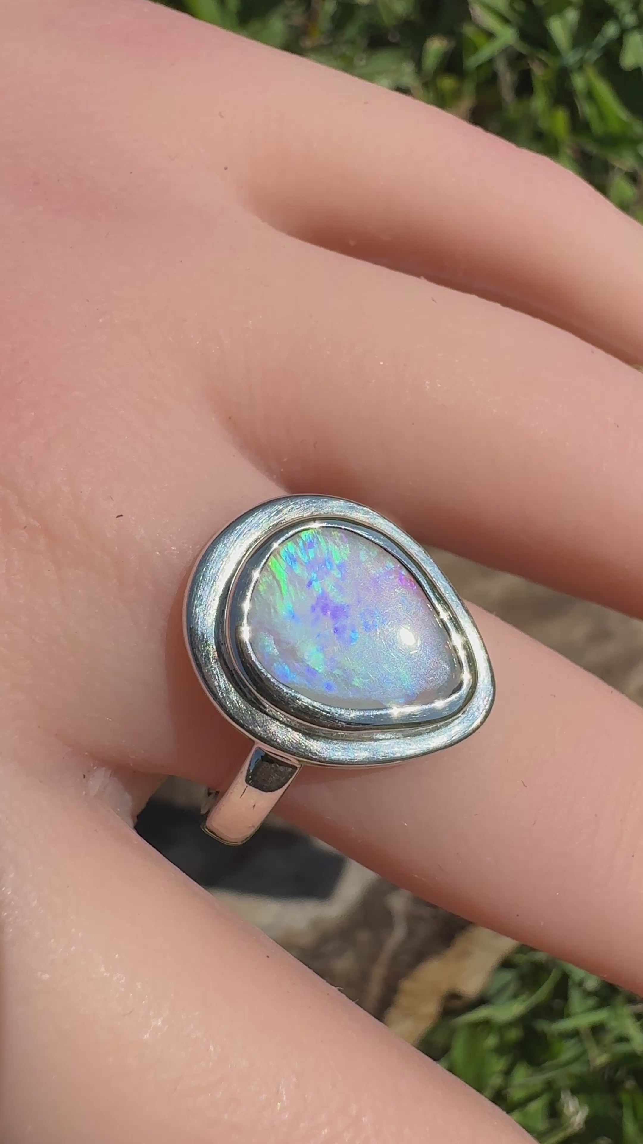 Coober Pedy Solid Light Opal Ring – Sterling Silver Flow