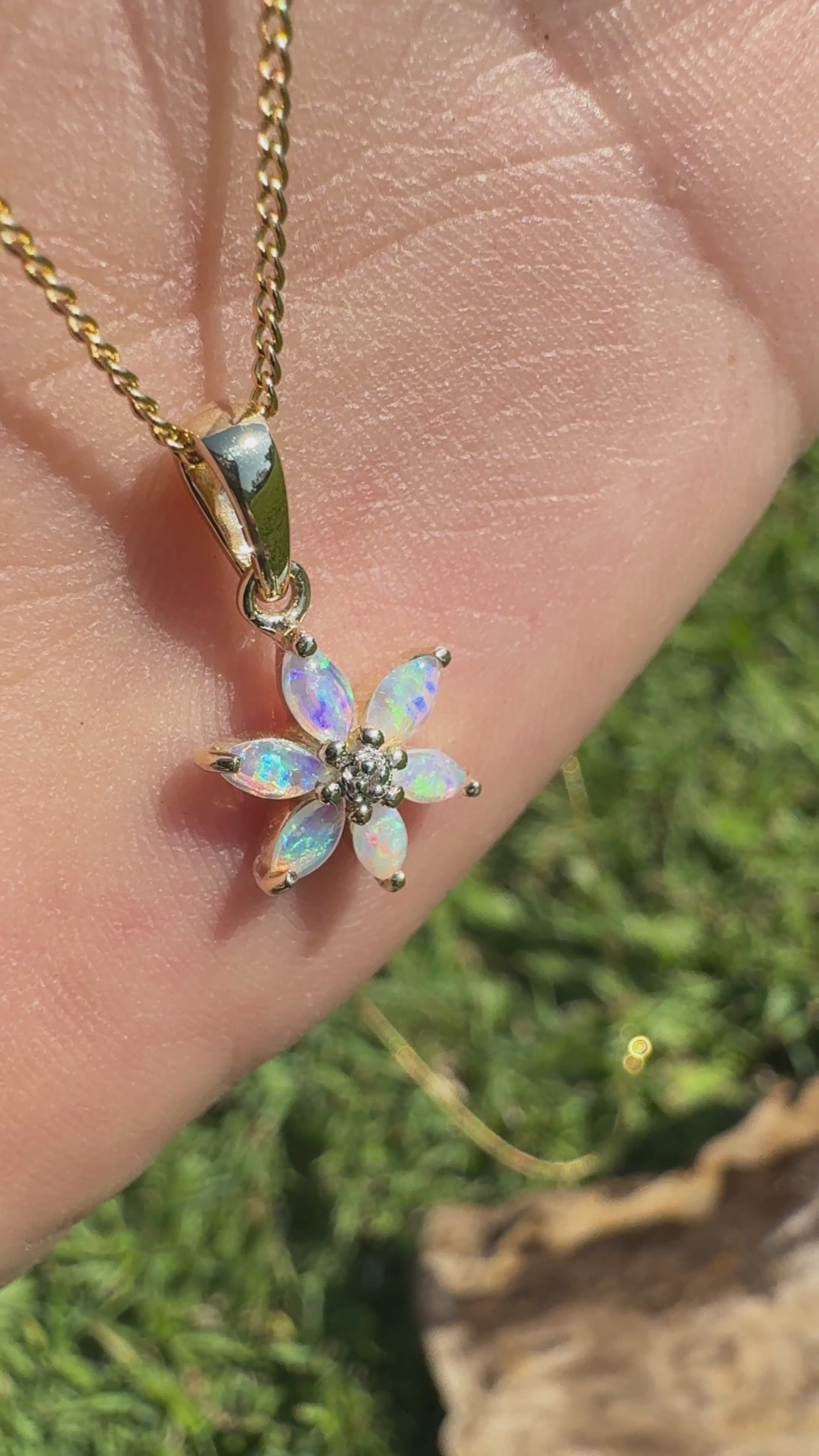 Handcrafted 0.3ct (total opal weight) Solid Coober Pedy Crystal Opal Pendant – 9ct Gold Elegance.