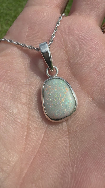 Embrace the enchanting natural wonder of Australia with this handcrafted 3.8ct Solid Lightning Ridge Opal 925 Sterling Silver Necklace.