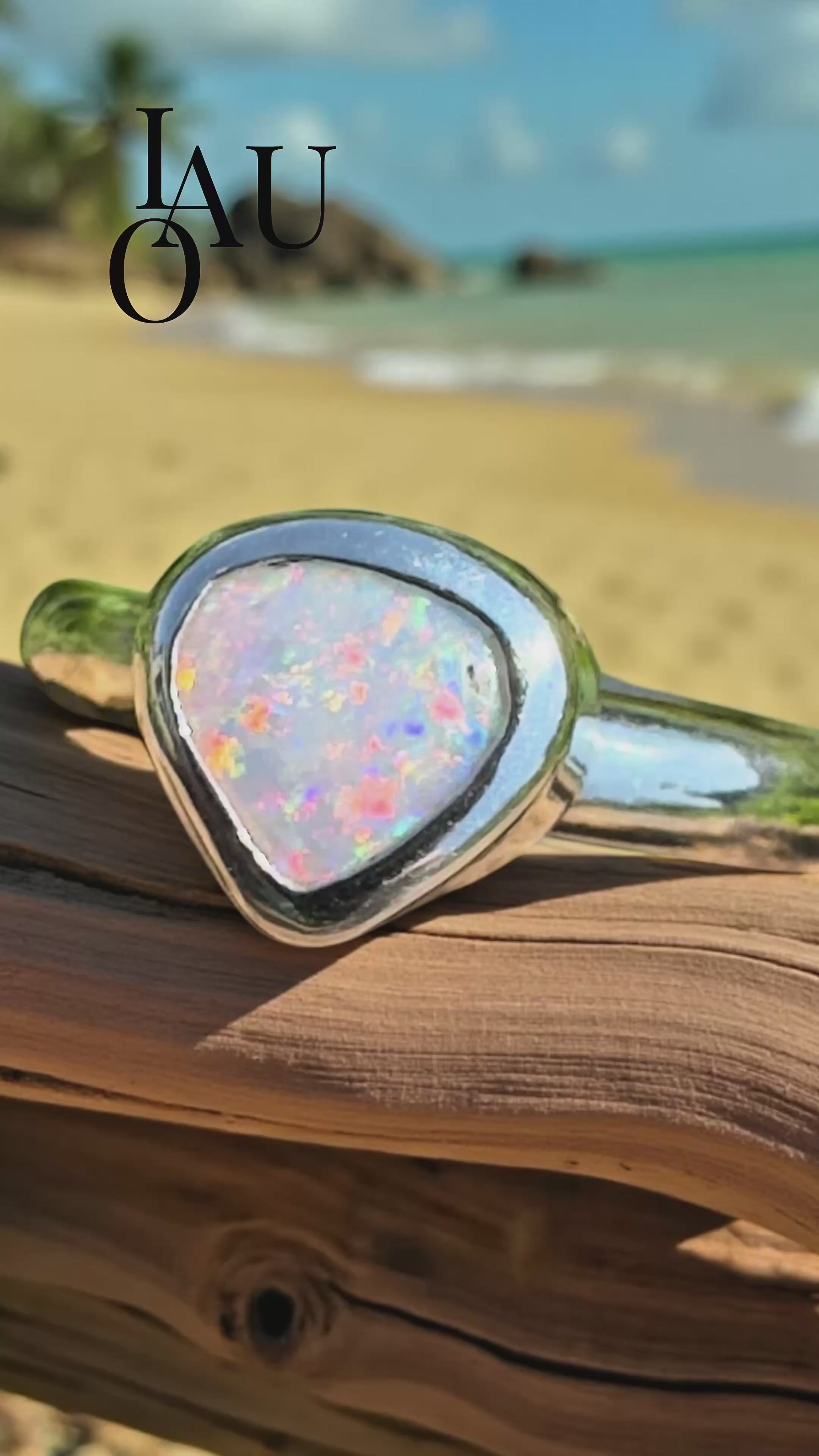 This hand-cut Lightning Ridge opal is set in a sterling silver band, showcasing its beautiful play of colour. Each flash of colour captures the magic of natural opals, making this a unique piece of Australian craftsmanship.