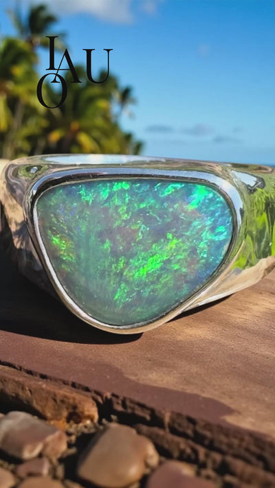 Adorn yourself with the natural beauty of Australia with this stunning Sterling Silver Lightning Ridge Opal Ring.