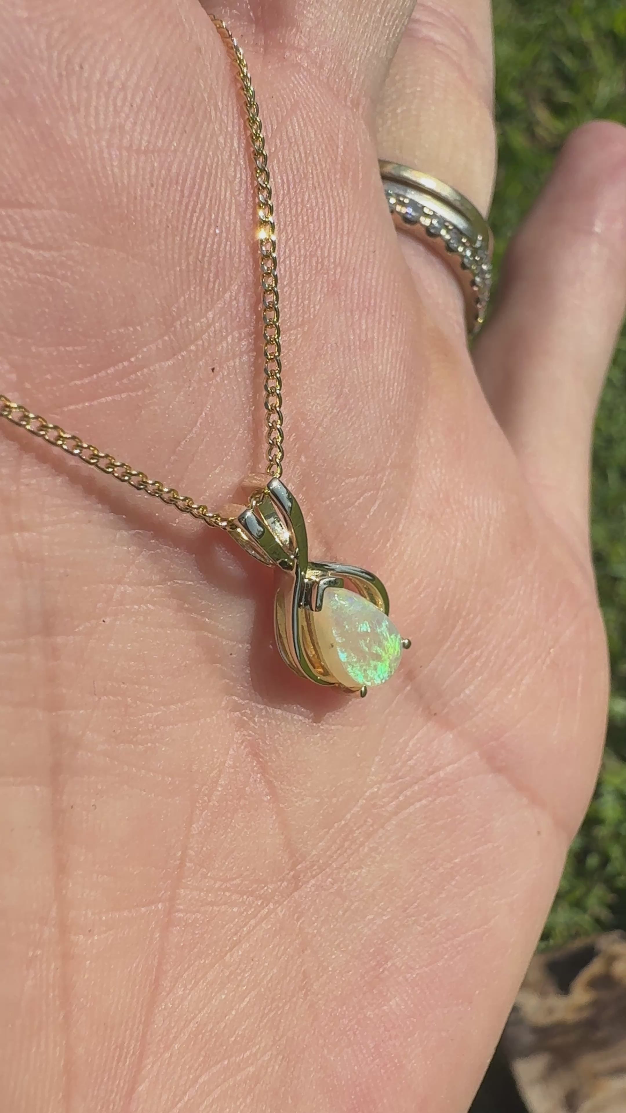 Handcrafted 0.4ct (total opal weight) Solid Coober Pedy Crystal Opal Pendant – 9ct Gold Elegance.