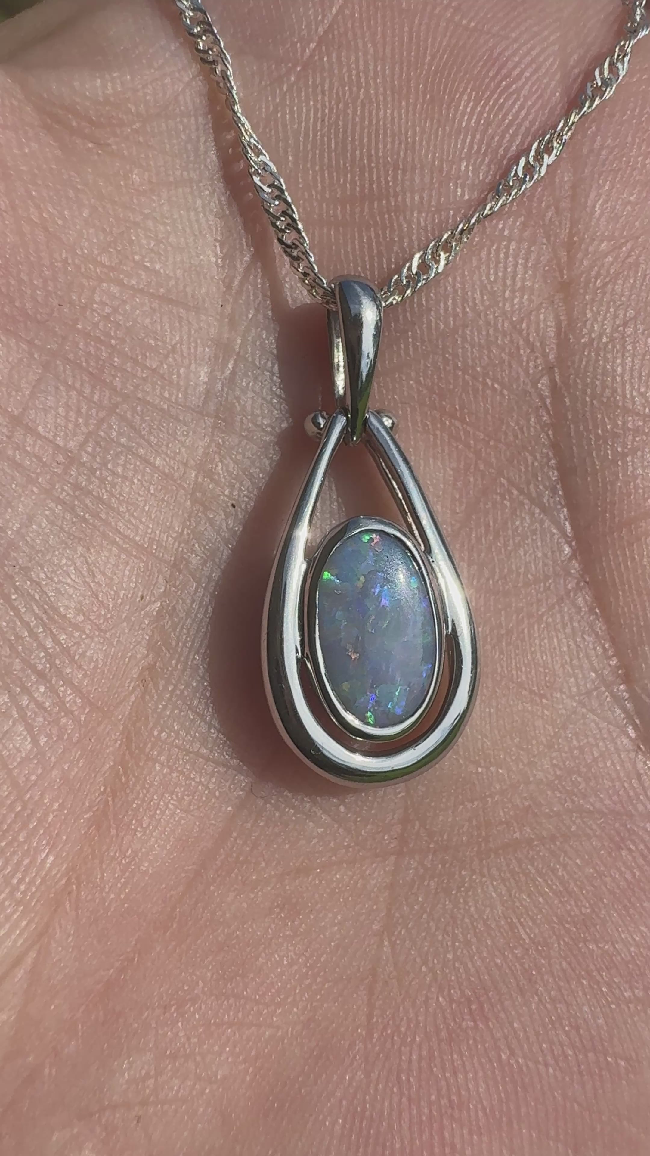 Embrace the enchanting natural wonder of Australia with this handcrafted 1.6ct Solid Lightning Ridge Semi Black Opal 925 Sterling Silver Pendant Necklace.