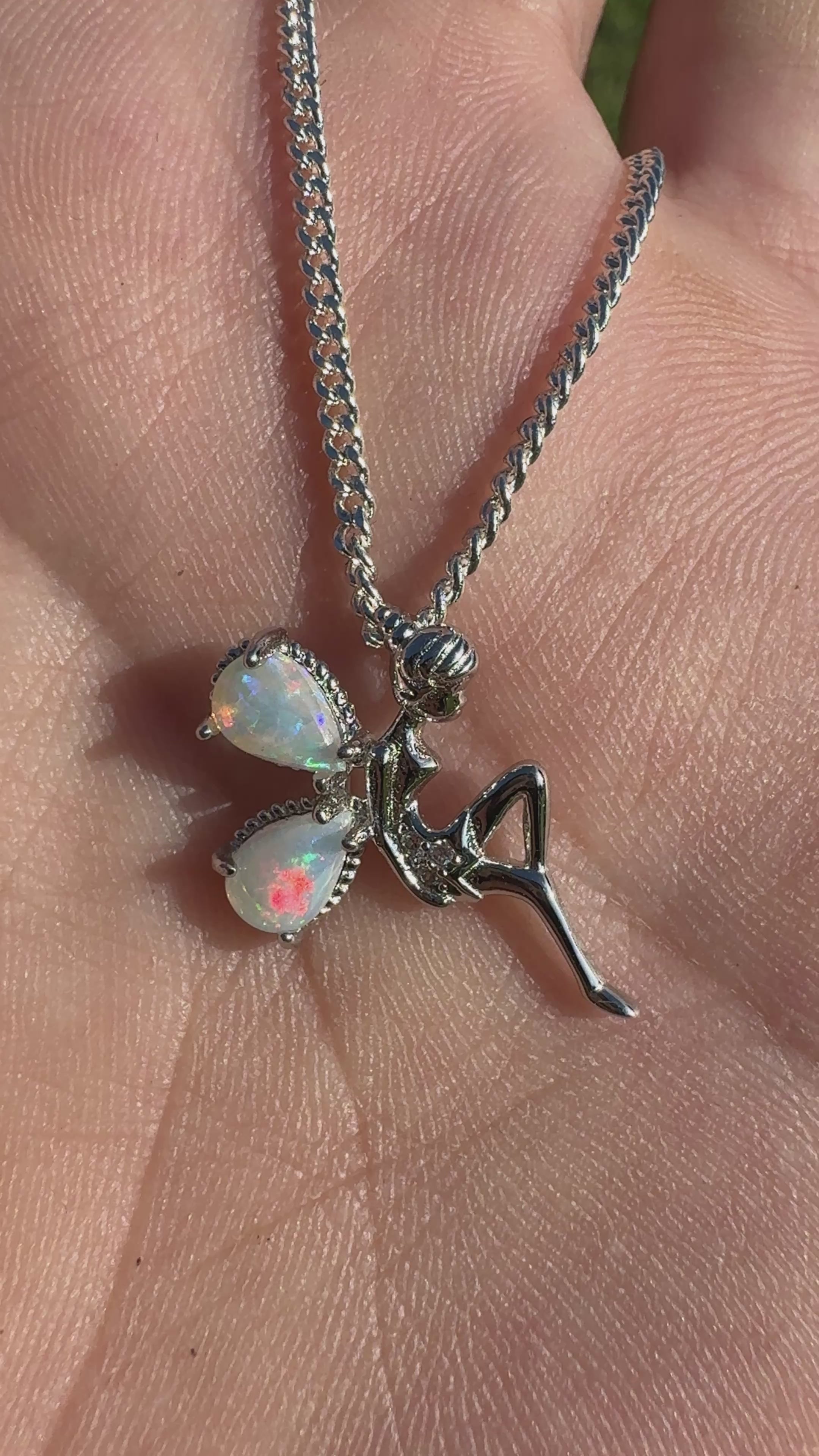 Adorn yourself with the timeless beauty of Australia with this handcrafted 0.6ct Lightning Ridge Opal 925 Silver Fairy Pendant Necklace.