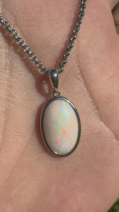 Embrace the enchanting natural wonder of Australia with this handcrafted 4.2ct Solid Coober Pedy Opal 925 Sterling Silver Necklace.
