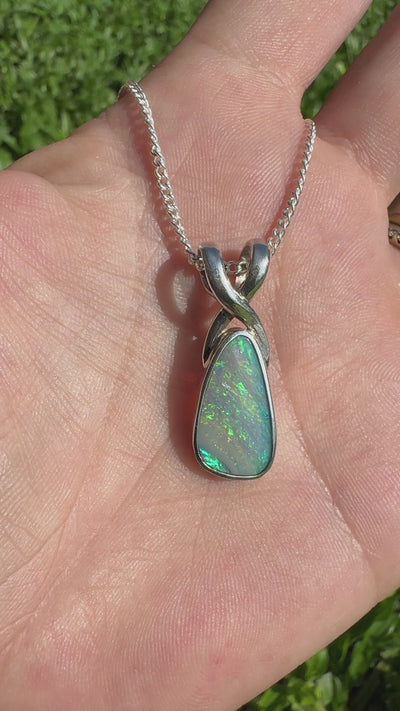 Embrace the enchanting natural wonder of Australia with this handcrafted 3ct Solid Coober Pedy Crystal Opal 925 Sterling Silver Necklace.