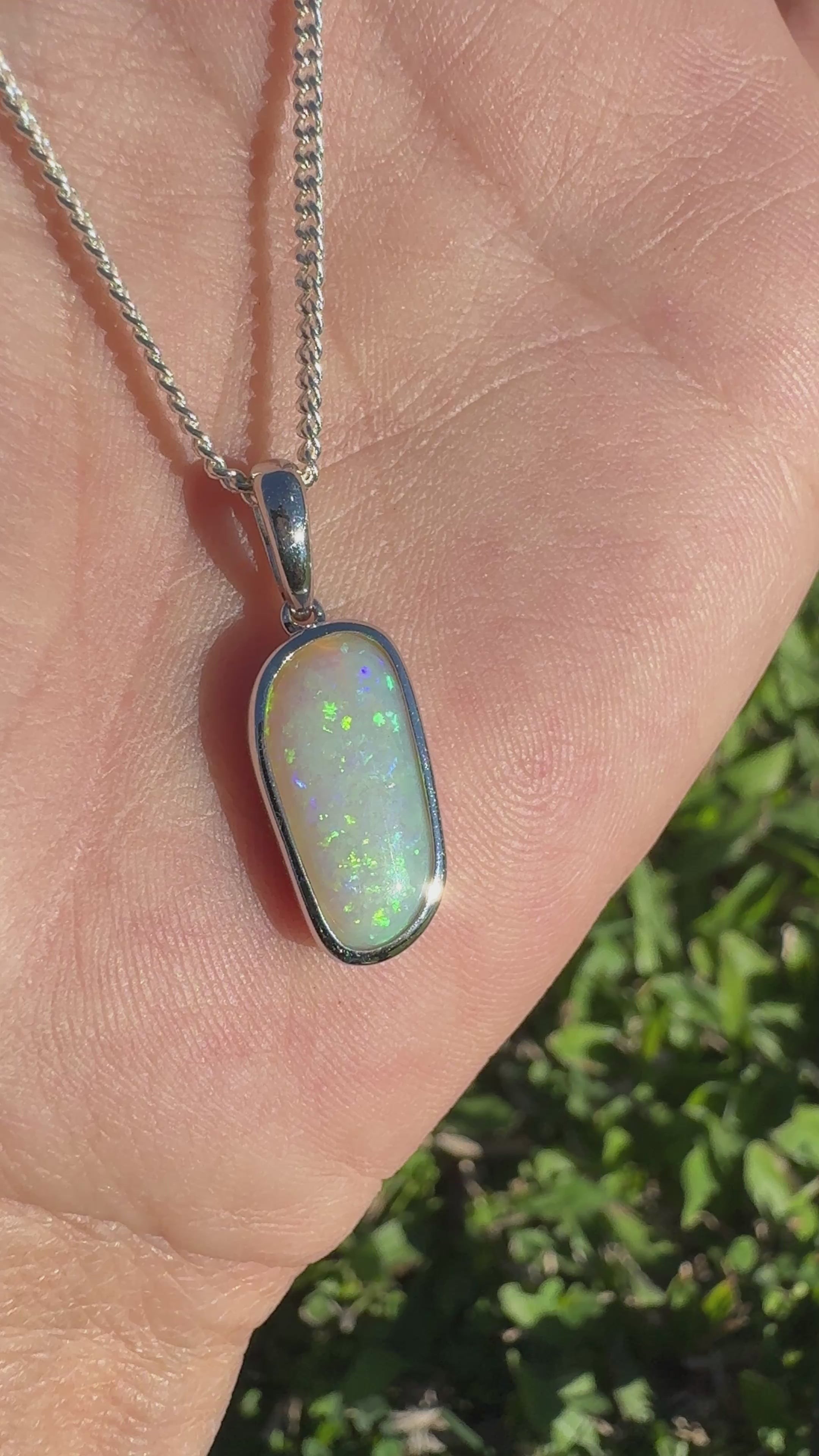 This opal is a true rarity, sourced from Mintabie — one of Australia’s most remote and now semi-closed opal fields. Mining in the area has almost ceased, making Mintabie opals increasingly scarce. Known for their vibrant play of colour and unique patterns, Mintabie opals like this one are becoming harder to find, making this pendant a truly special and collectable piece.
