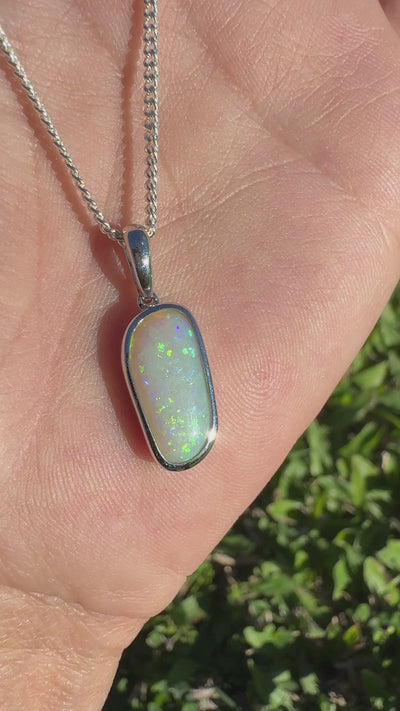 Mintabie Meadowlight ~ 3ct Solid Mintabie Opal 925 Sterling Silver Pendant Necklace