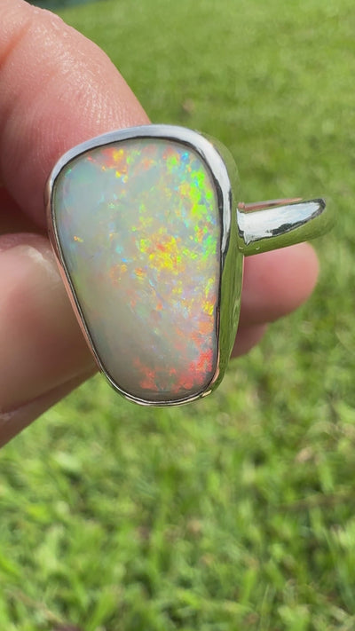 Adorn yourself with the natural beauty of Australia with this stunning Sterling Silver Coober Pedy Opal Ring.
