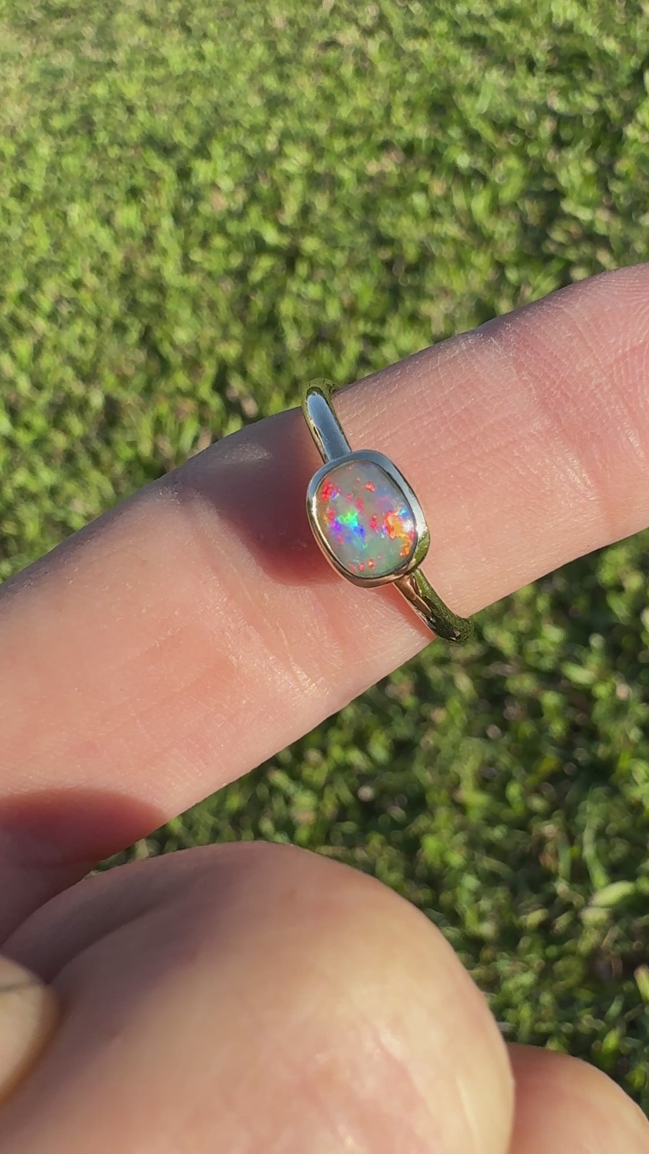 Adorn yourself with the natural beauty of Australia with this stunning 0.7ct Solid Lightning Ridge Opal Handcrafted 9ct solid yellow gold ring.