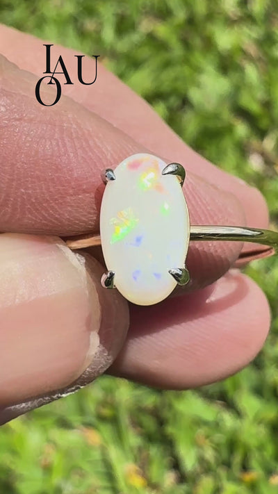 Adorn yourself with the natural beauty of Australia with this stunning 0.9ct Solid Coober Pedy Opal Handcrafted 9ct fine gold ring.