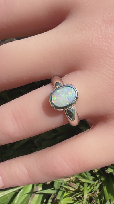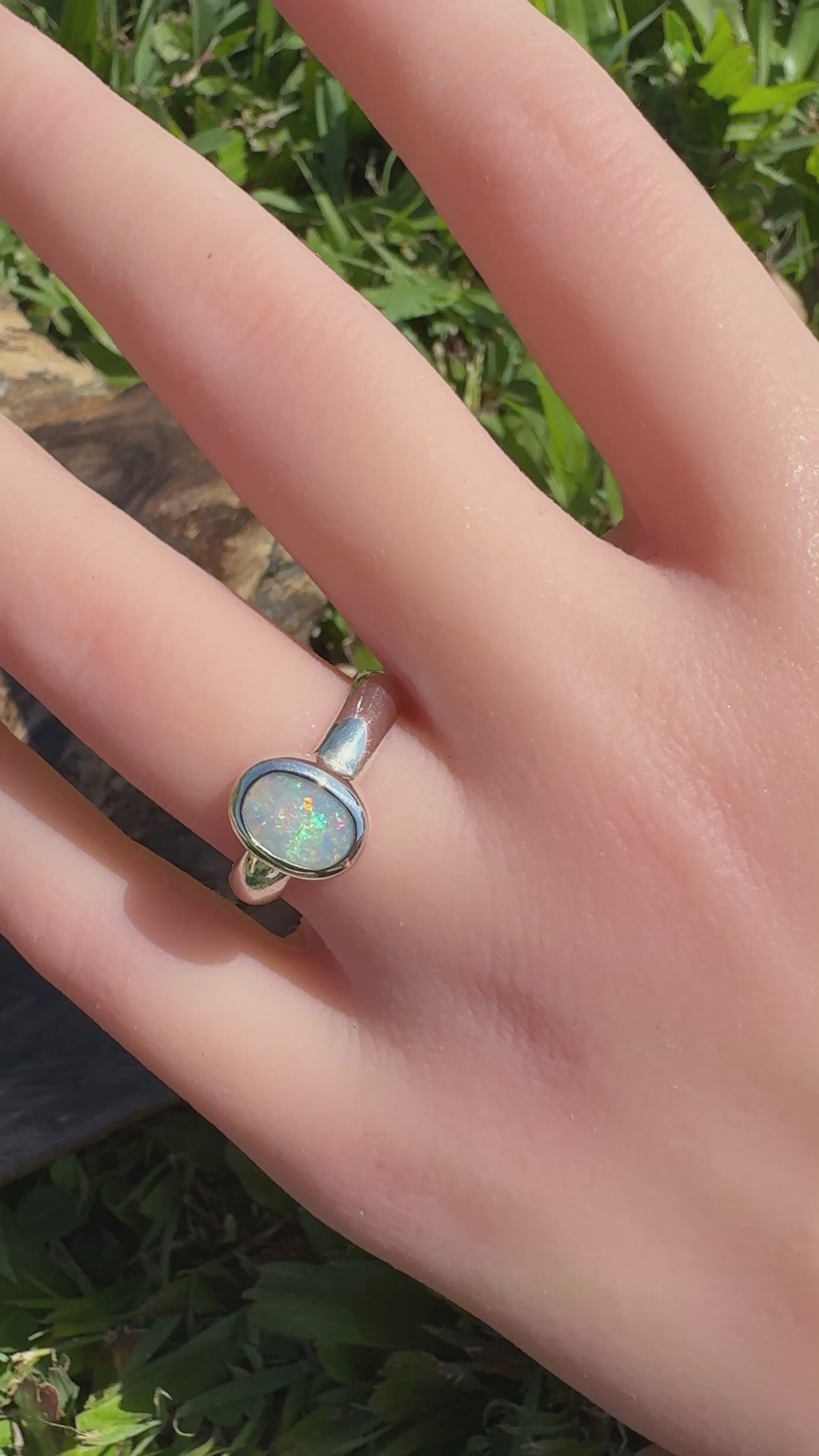 Mintabie Solid Light Opal Ring – Sterling Silver Simplicity