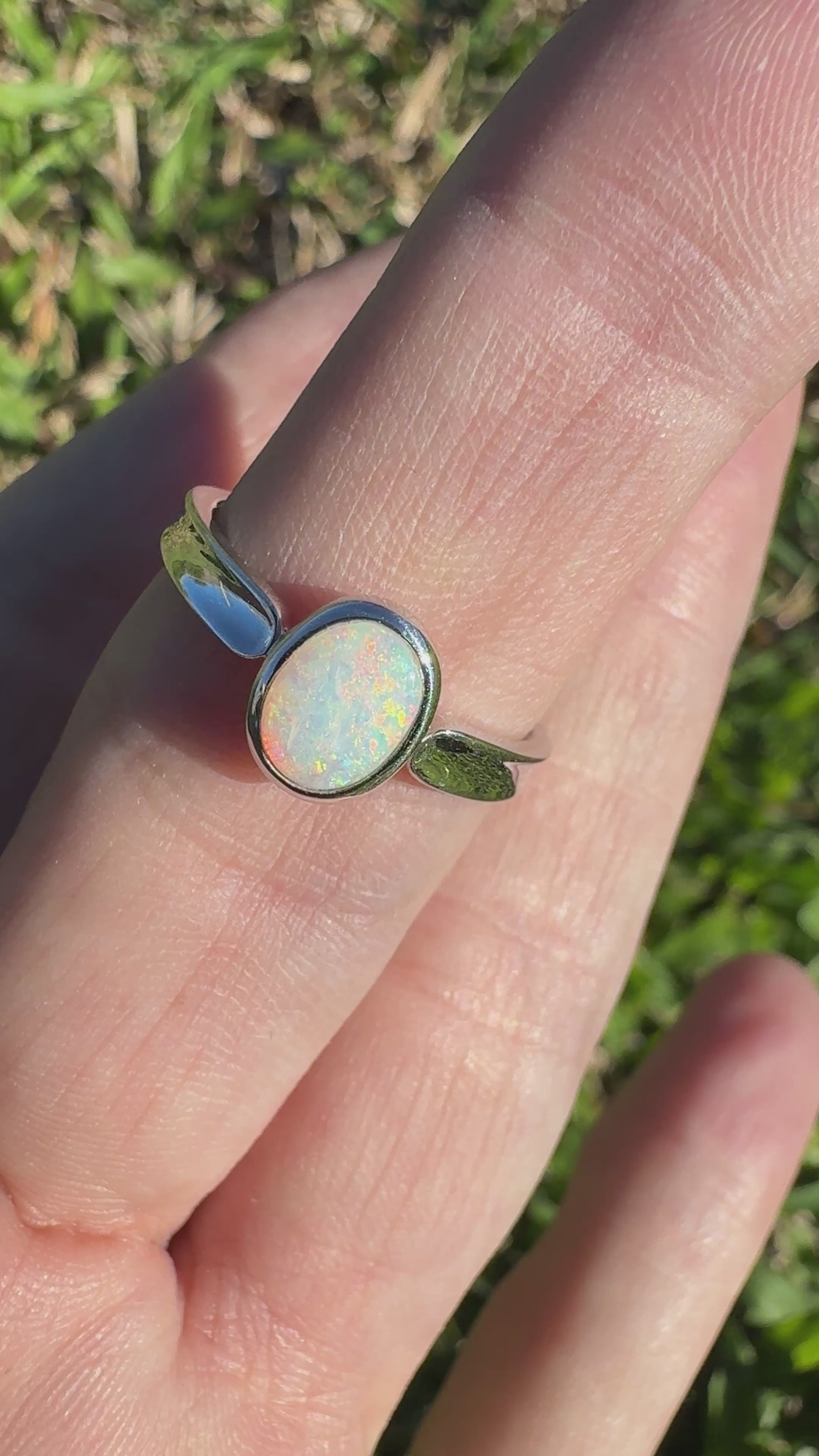 Adorn yourself with the natural beauty of Australia with this stunning 0.7ct Solid Coober Pedy Crystal Opal Handcrafted Sterling Silver Ring.