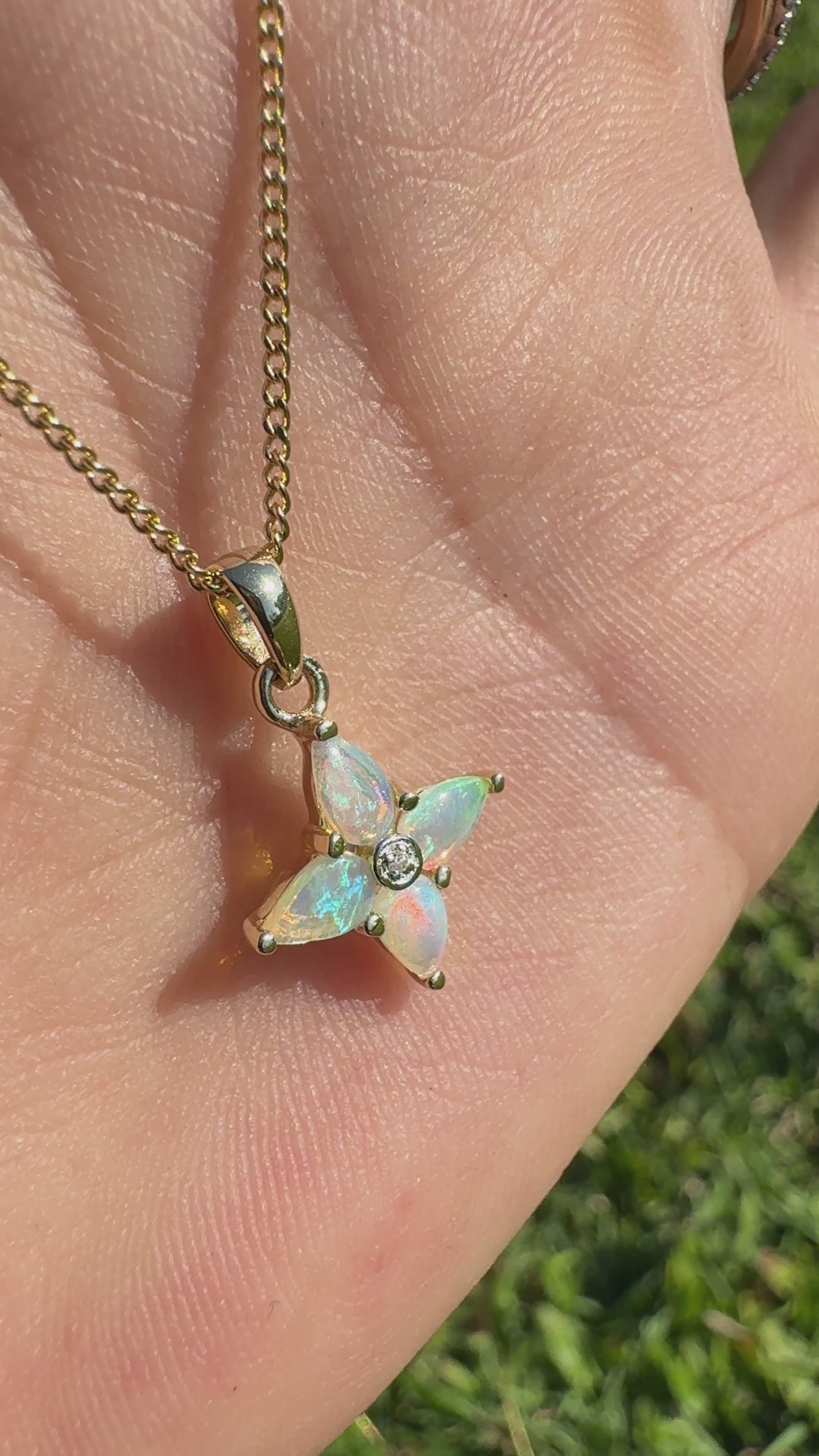 Set in 9ct yellow gold this pendant brings a luxurious touch to the organic, naturalistic touch of the opal.