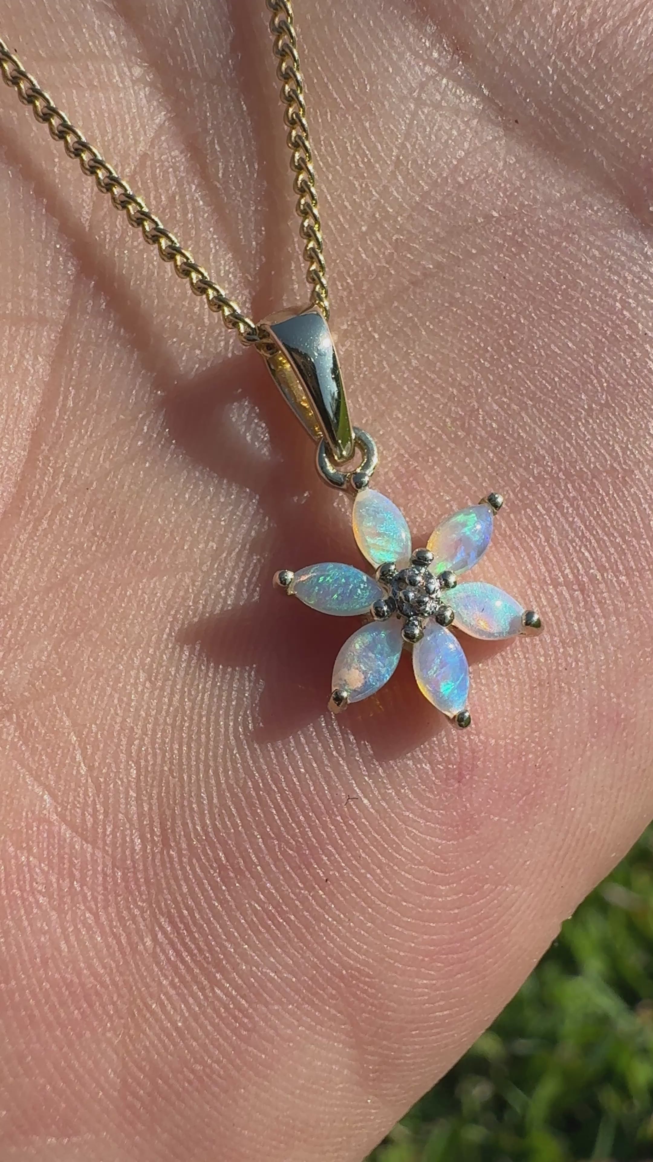 Handcrafted 0.3ct (total opal weight) Solid Coober Pedy Crystal Opal Pendant – 9ct Gold Elegance.